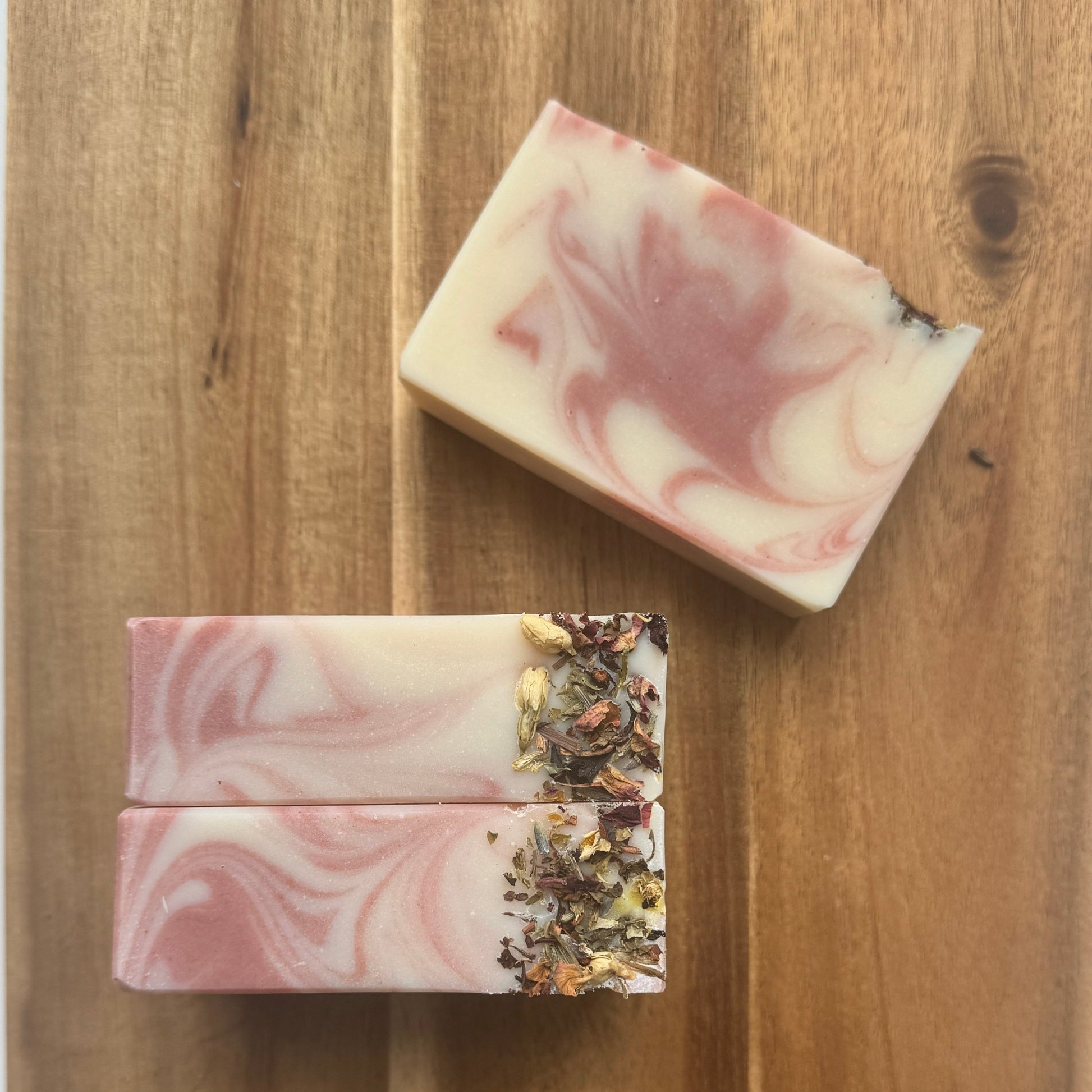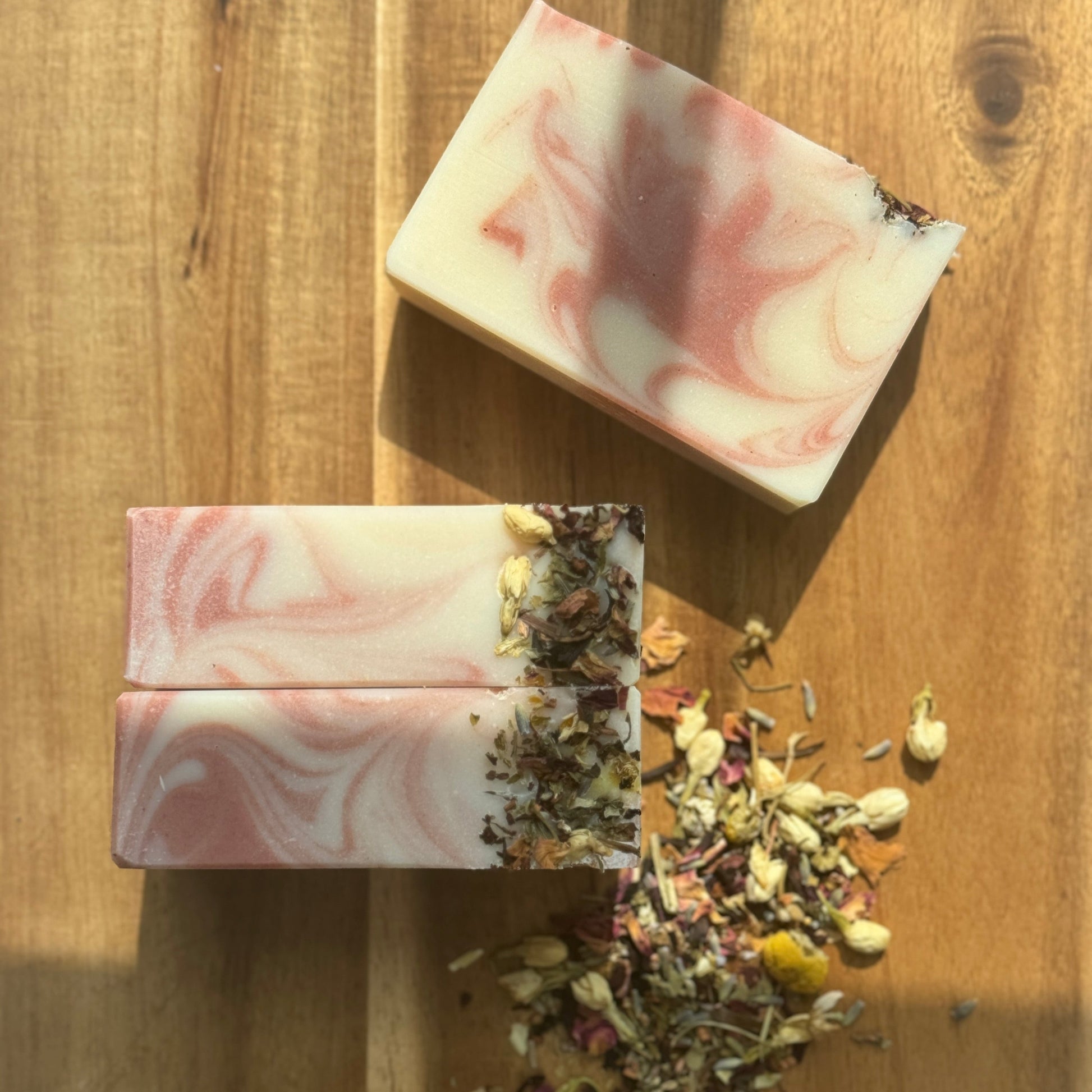 Our Organic Herbal Tea Infused Soap is a luxurious botanical blend designed to nourish and rejuvenate your skin. Crafted with a soothing herbal tea made from lavender, roses, dandelions, jasmine flowers, Passion Flowers, chamomile, South African Honeybush and Hibiscus, it brings nature's calming touch to your daily routine. Scented with the delightful essential oils of lavender, lemon, ylang-ylang, and geranium, it offers a refreshing, floral-citrus aroma that leaves you feeling relaxed and pampered.